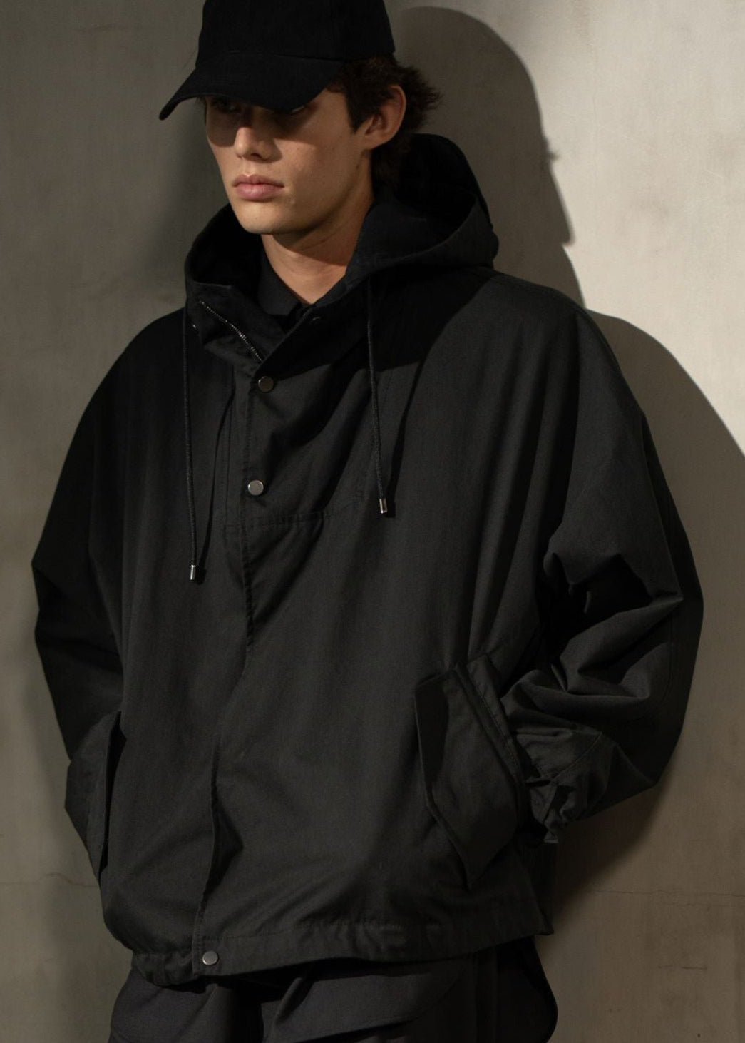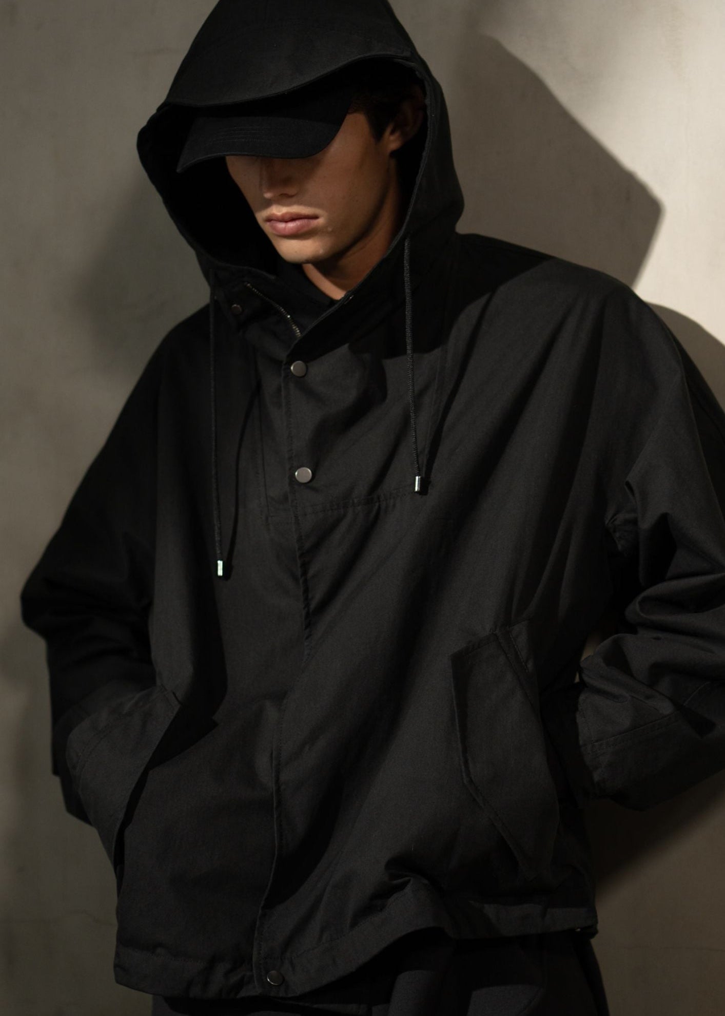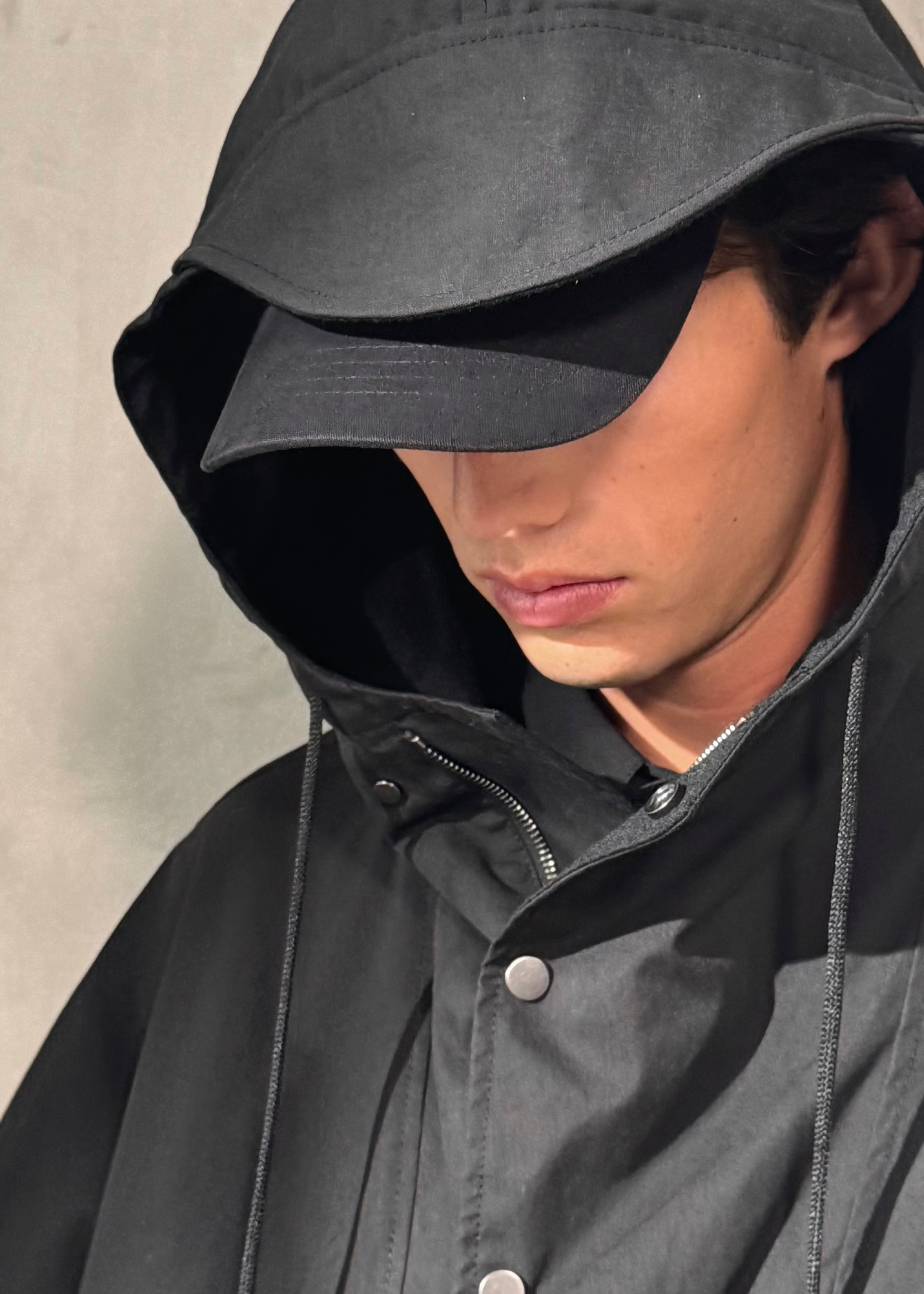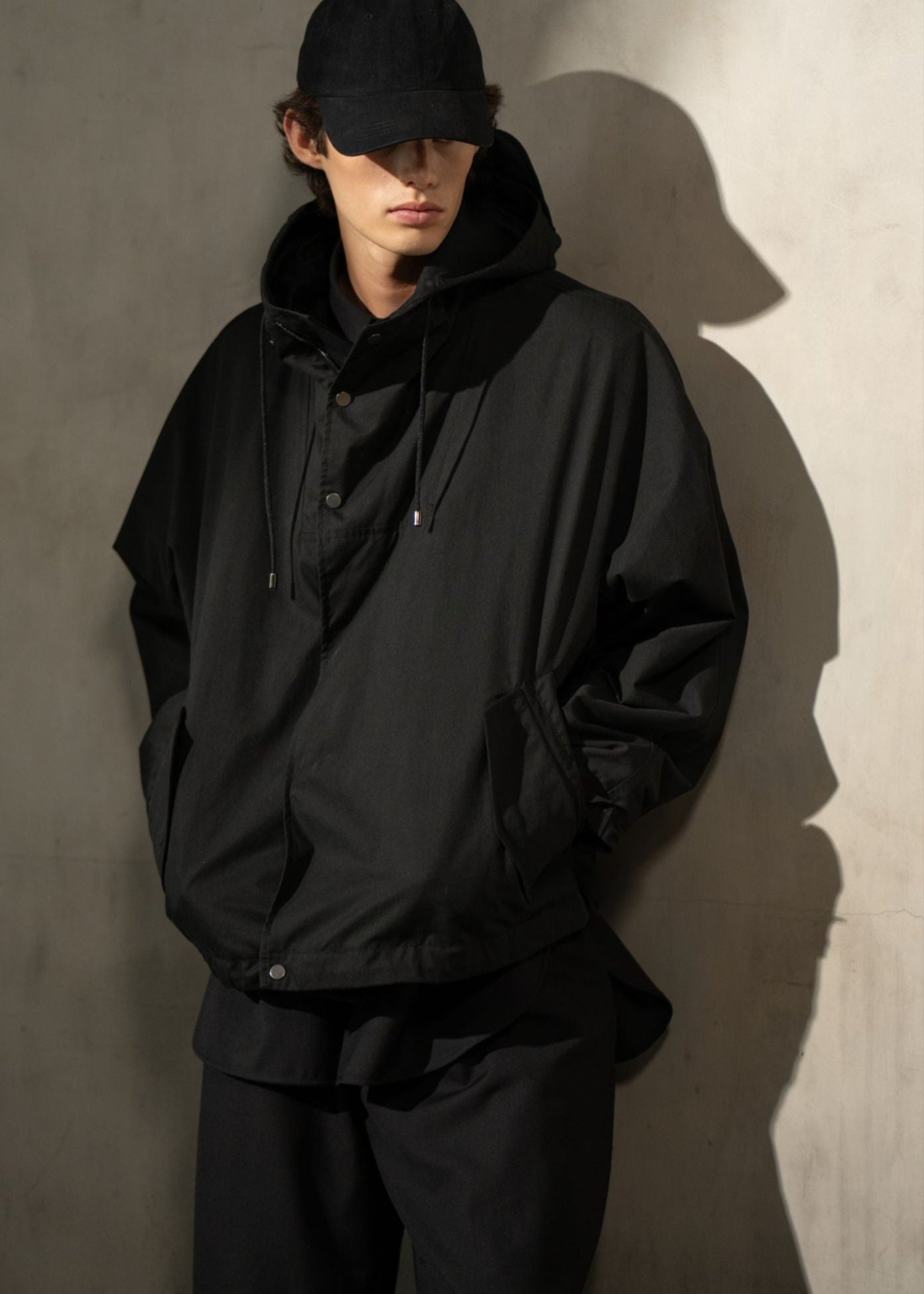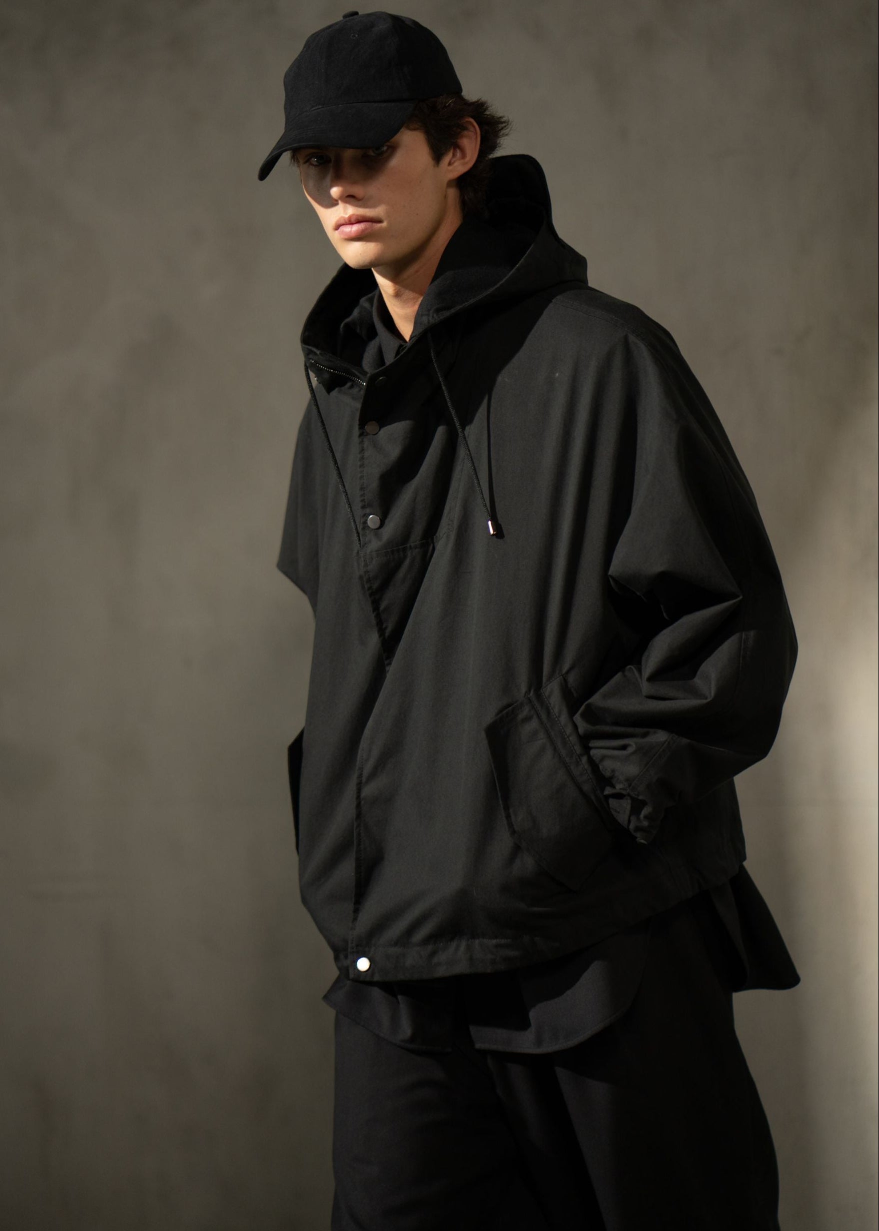 Oversized fit with fluid movement and tailored restraint. Designed for transitional layering and understated ease.