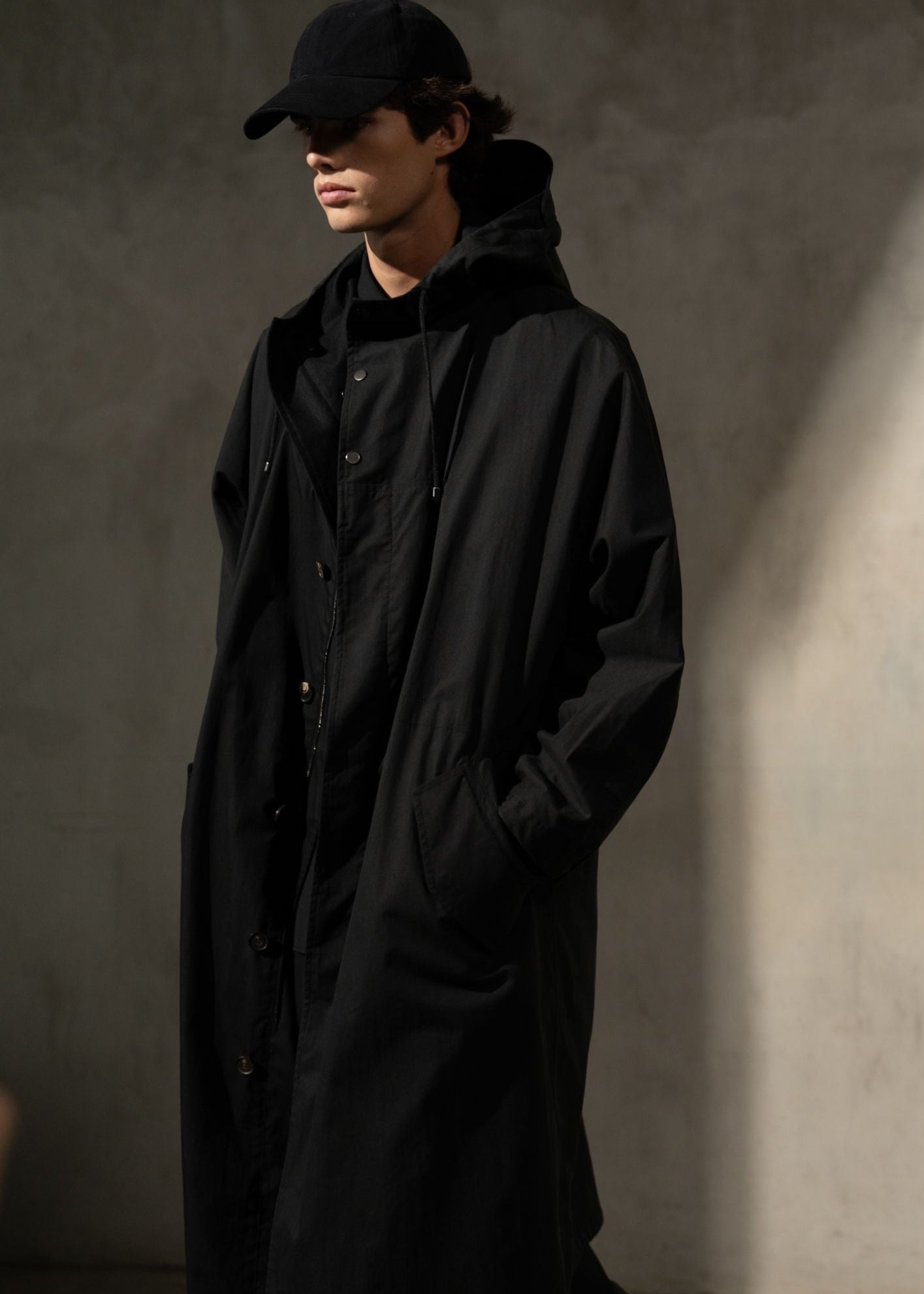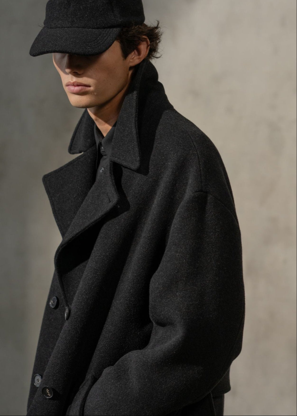 HERRINGBONE BELTED TOPCOAT - Charcoal
