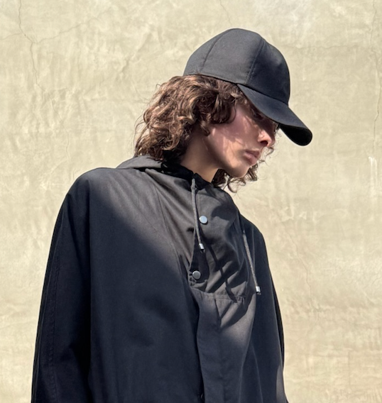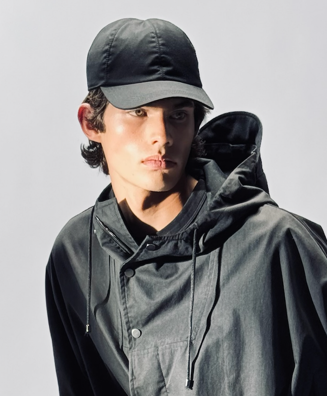 A structured baseball cap crafted in matching Ines Cotton fabric. Detailed with a subtle monochrome embroidered logo on the back right side.
