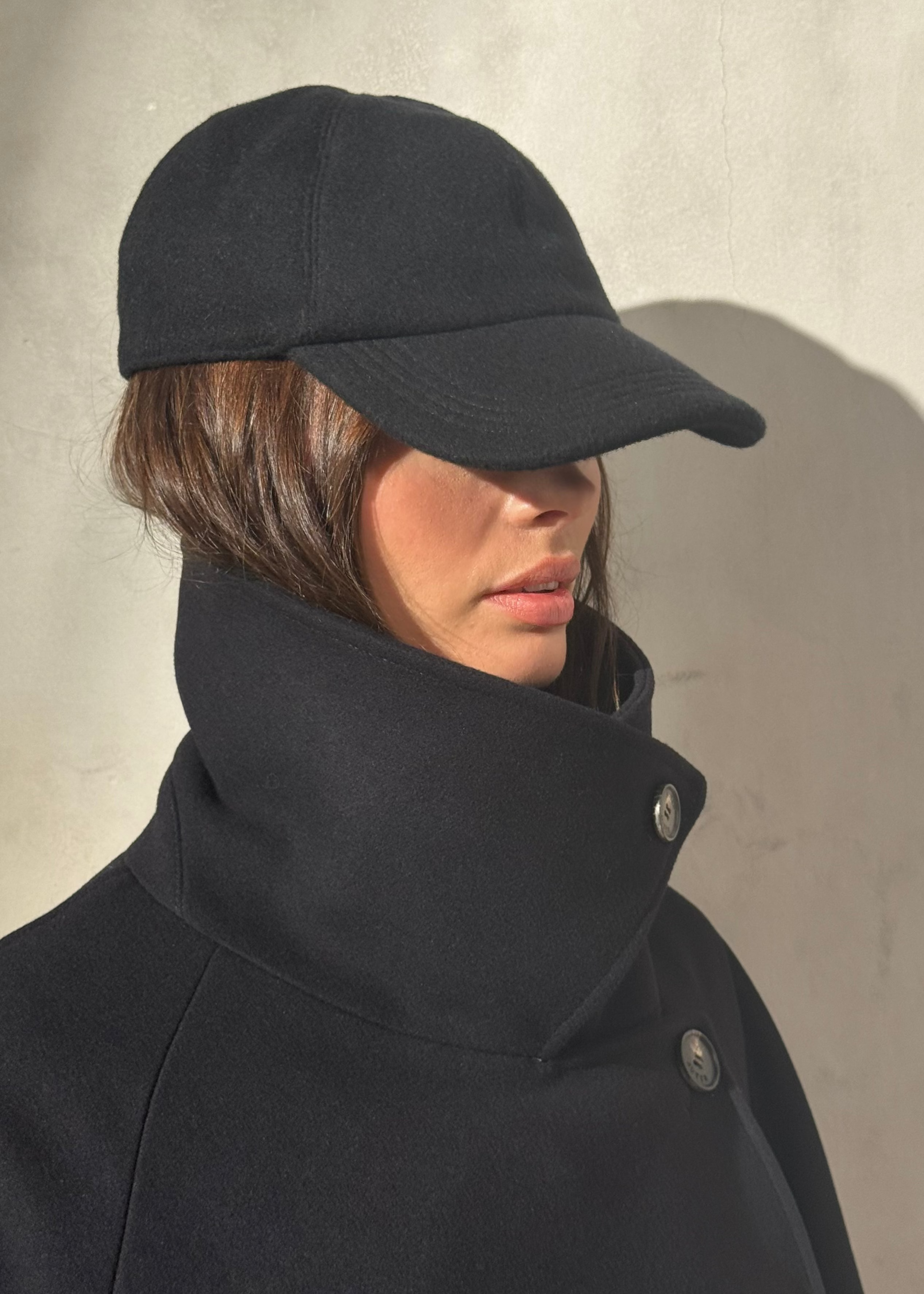 A structured baseball cap crafted in matching Italian sugar fabric for understated refinement. Detailed with a subtle monochrome embroidered logo on the back right side.
