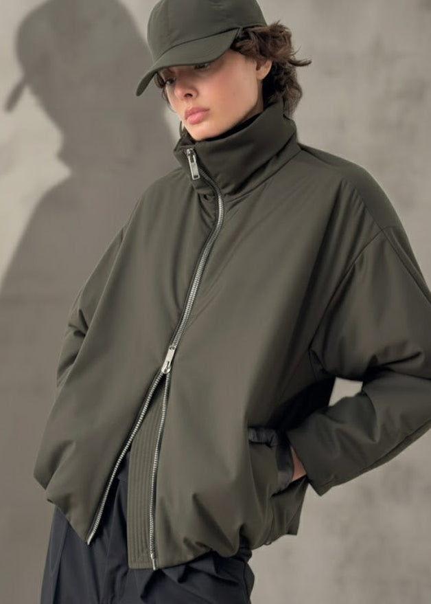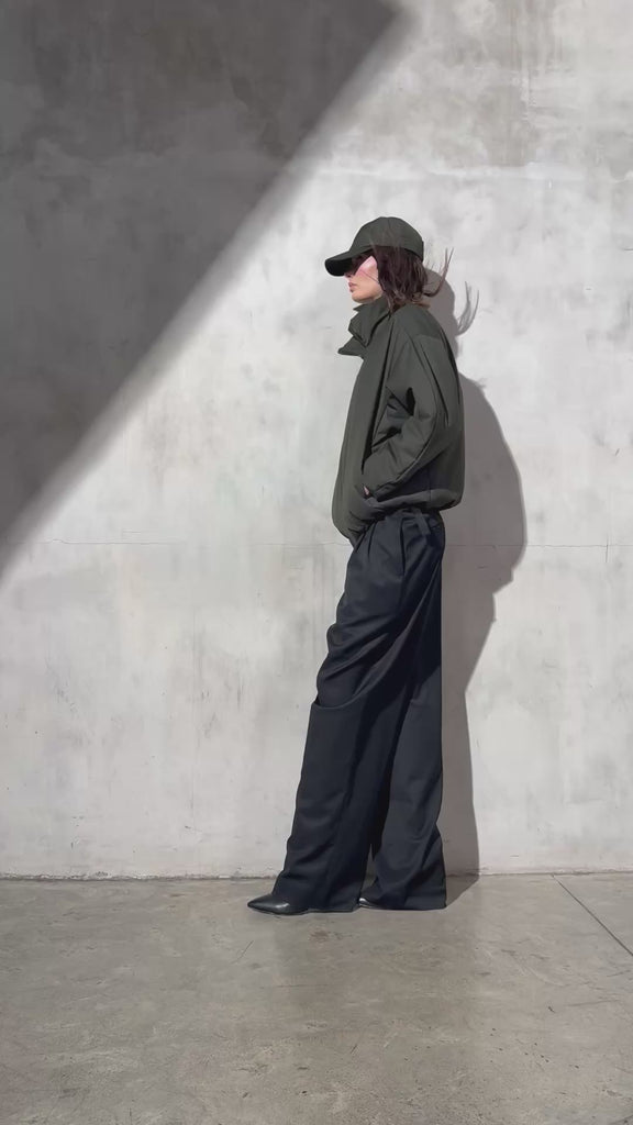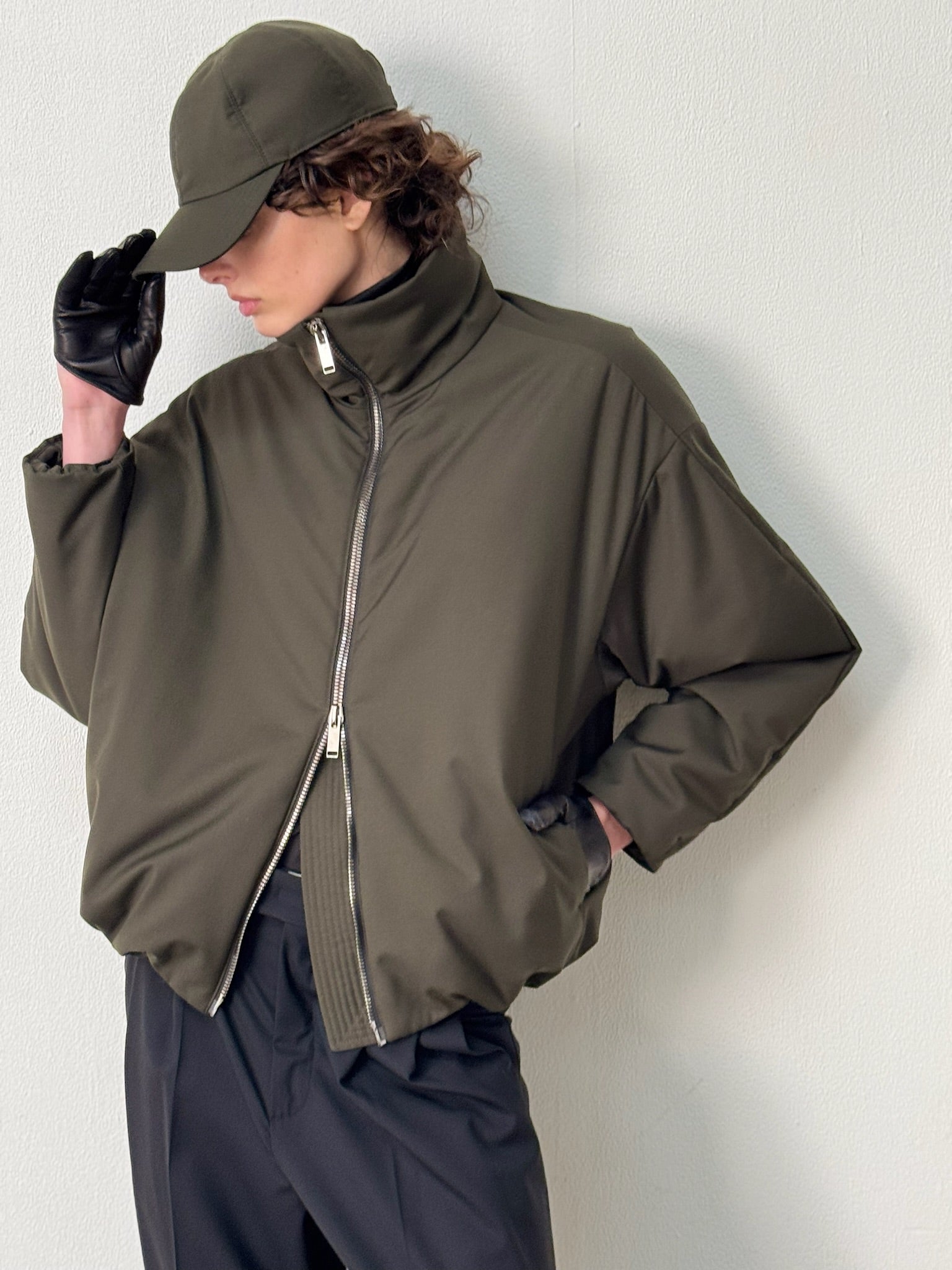 An architectural puffer jacket crafted from proprietary Italian-made AUTER fabric. Water and wind resistant, it balances structure and softness in a sleek, quilt-free design.