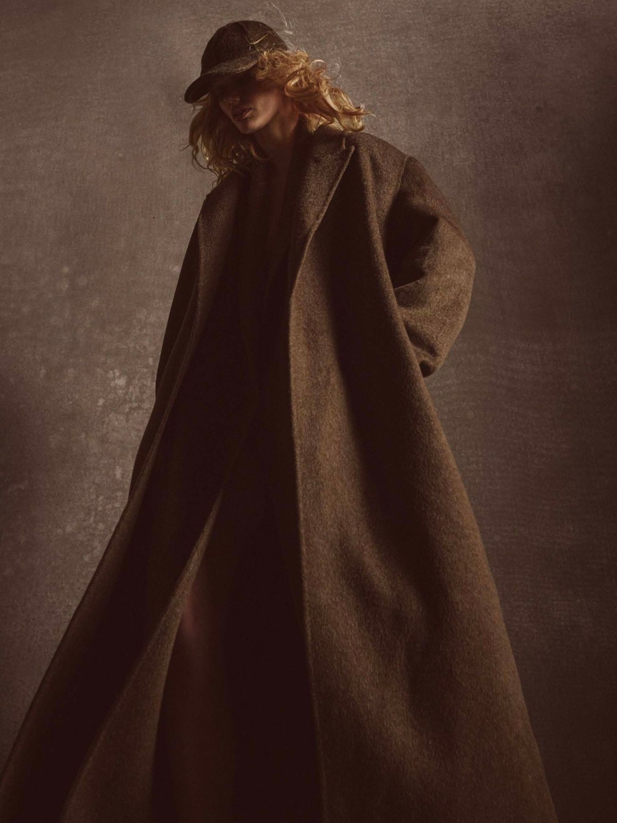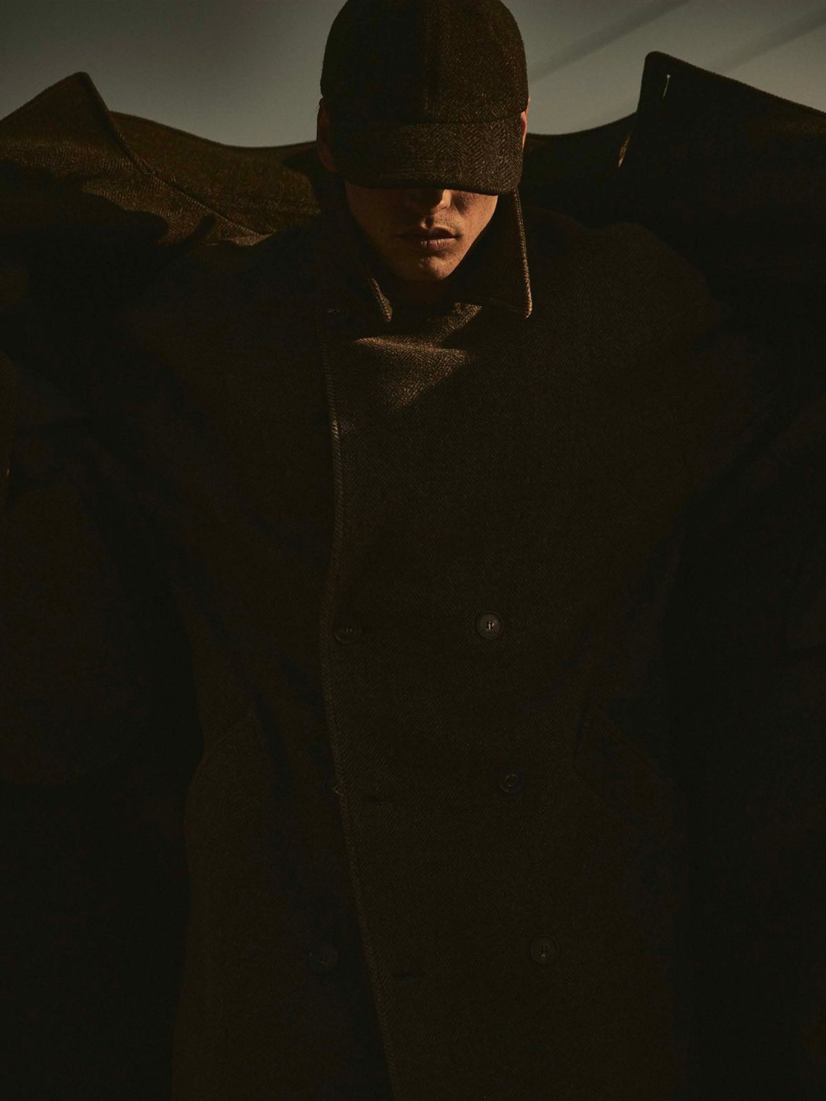 HERRINGBONE BELTED TOPCOAT - Espresso