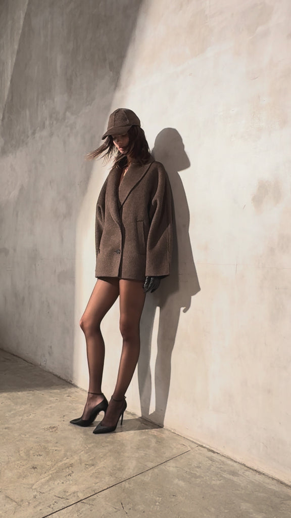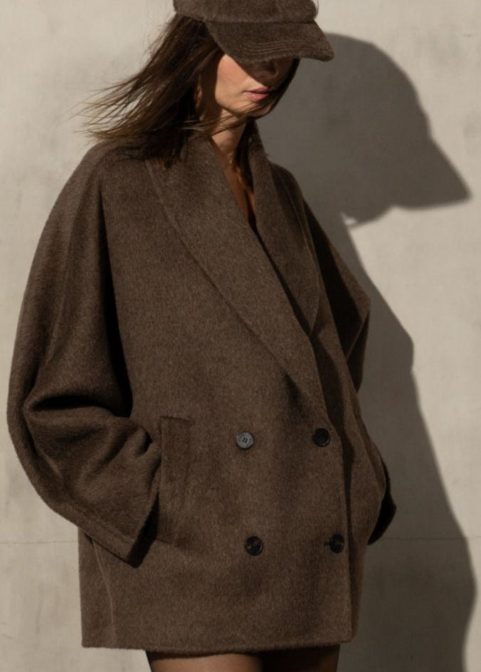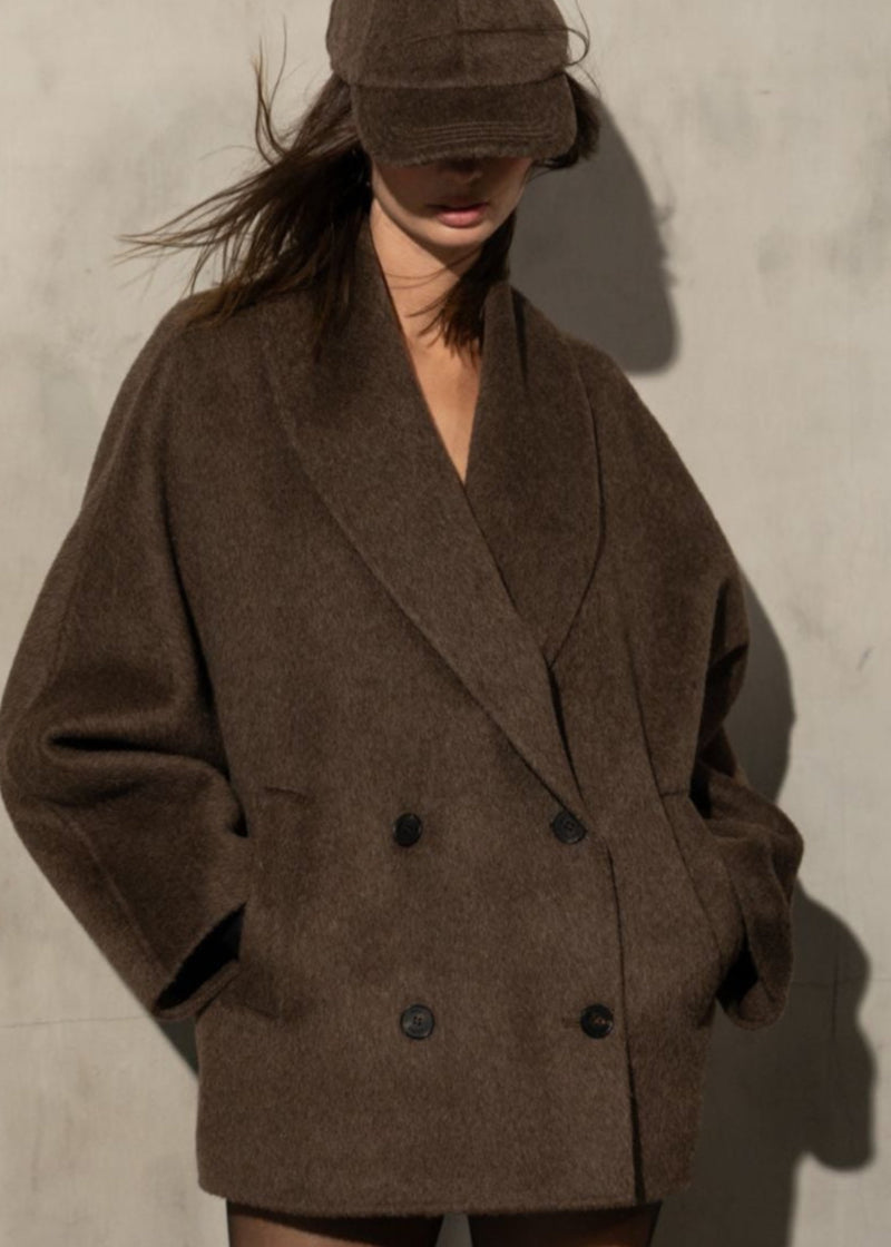 Lightweight yet warm, this coat balances structure and softness. The fluid drape and dropped shoulders create an easy, sculptural form ideal for layered dressing.