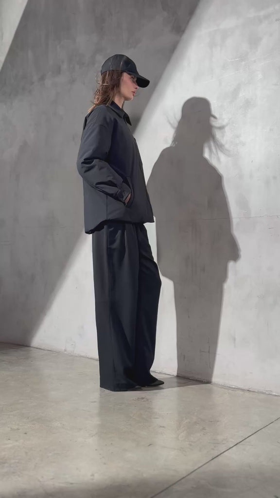 Relaxed fit with a fluid, sculpted drape and structured warmth. Designed to balance technical precision with understated luxury.